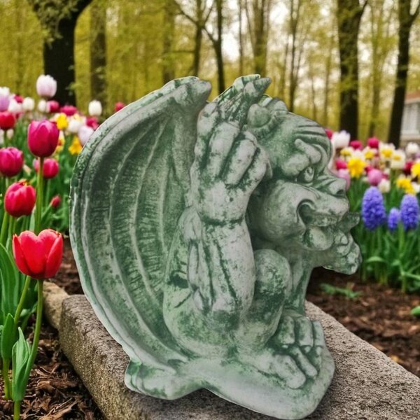 Cette gargouille moqueuse,posée dans votre jardin, ou sur un pilier d'entrée ,ne manquera pas de surprendre vos visiteurs, par son réalisme.