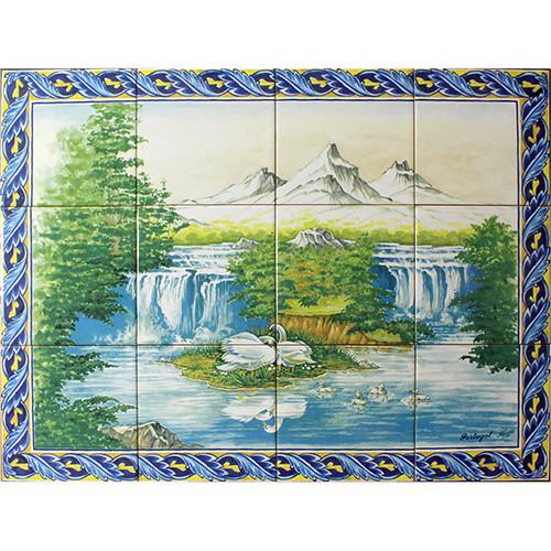 -FRESQ 645-Les-cygnes-couleur-12-carreaux-