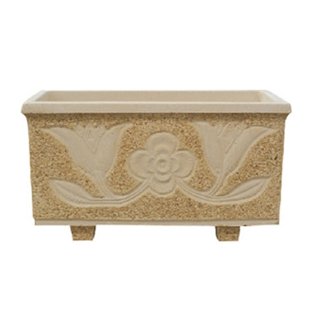 Jardiniere en gravier lavé, motif Fleurs, largeur 60 cm. Idéal pour décorer votre jardin avec une composition de fleurs ! Fabrication artisanale, en Europe.