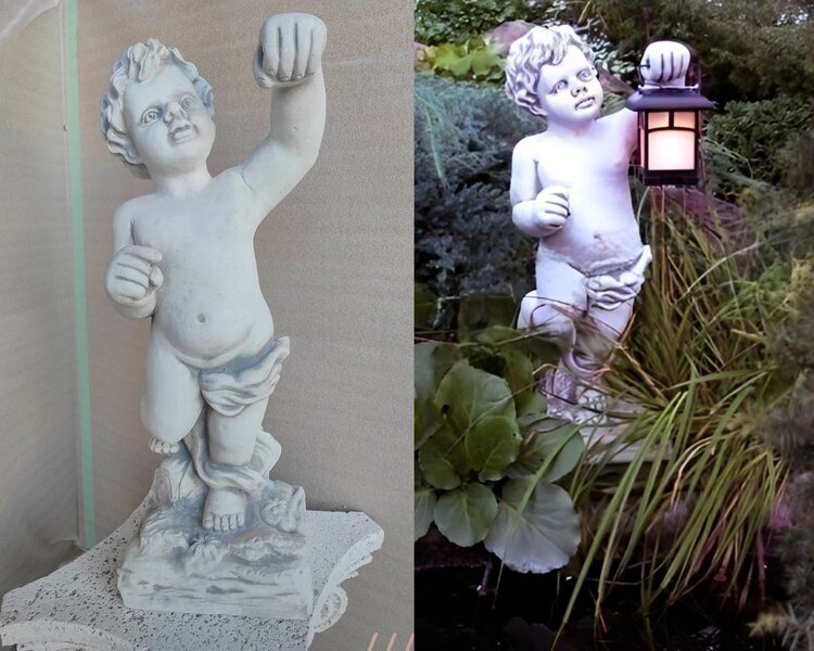 Ce charmant petit bambin, peut vous servir pour éclairezr votre chemin,vous pouvez lui mettre une lanterne dans la main comme sur la photo.
