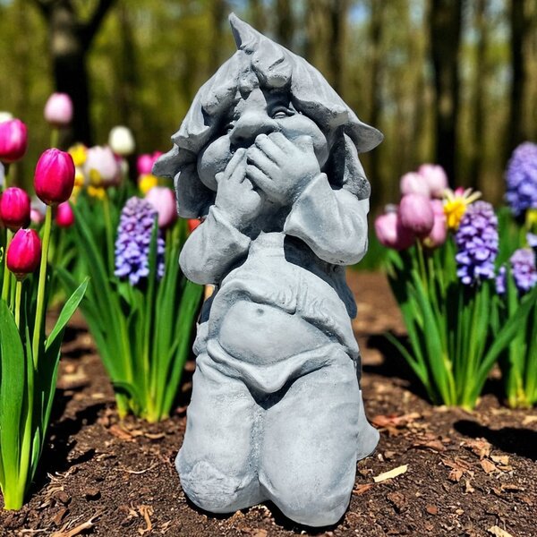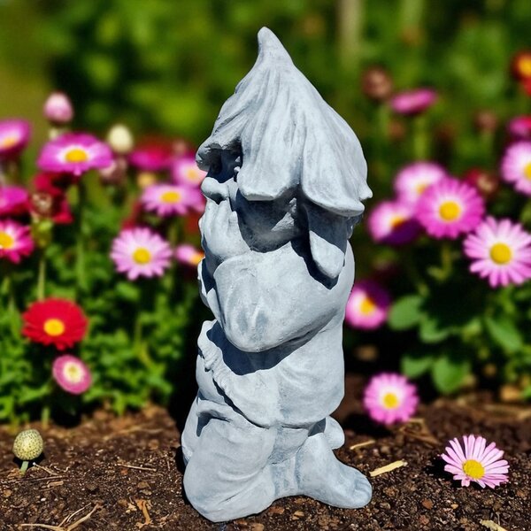 Statue en pierre reconstituée, Lutin doigt dans la bouche Cette décoration sera du plus bel effet dans votre jardin ! Fabrication artisanale, en Europe.