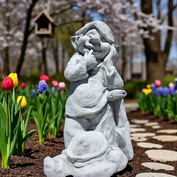 Statue en pierre reconstituée, Lutin jardinier Cette décoration sera du plus bel effet dans votre jardin ! Fabrication artisanale, en Europe.