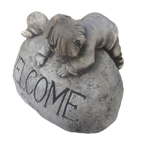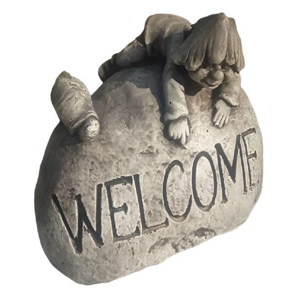 Statue en pierre reconstituée, modèle Welcome Lutin. Cette décoration sera du plus bel effet dans votre jardin ! Fabrication artisanale, en Europe.