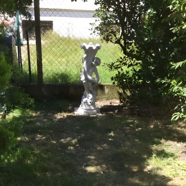 Statue enfant avec pot de fleurs
