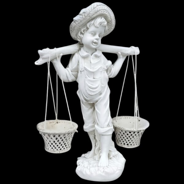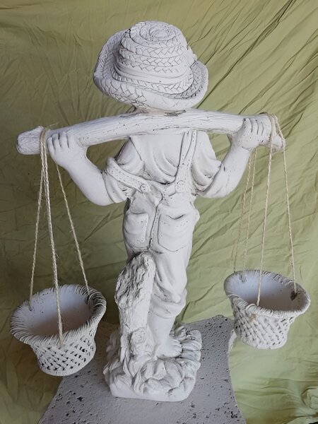 Ce charmant petit garçon trouvera sa place dans votre jardin vous pourrez planter des fleurs dans les petits paniers.