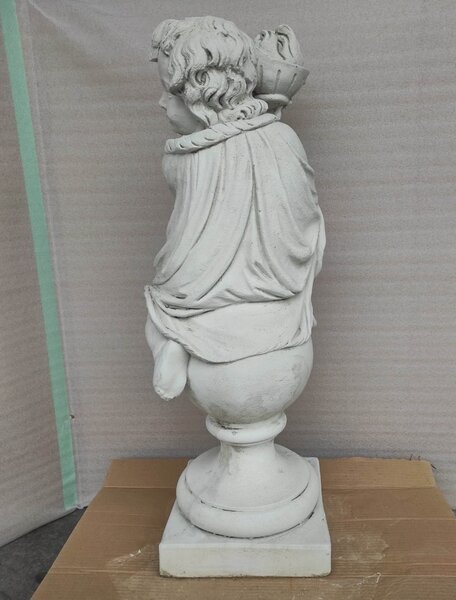 Statue enfant avec pot de fleurs