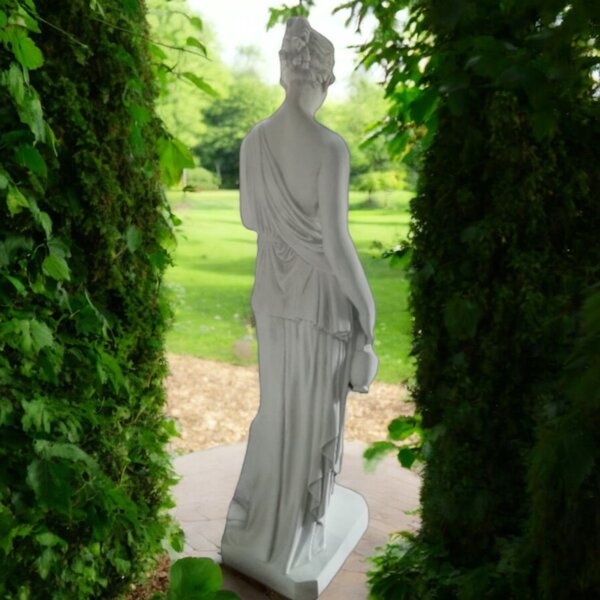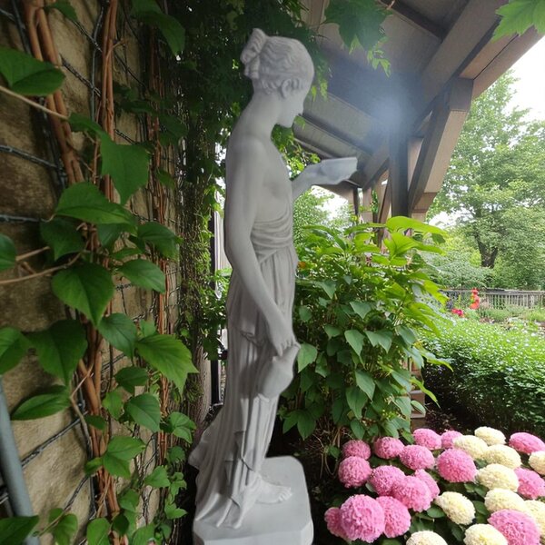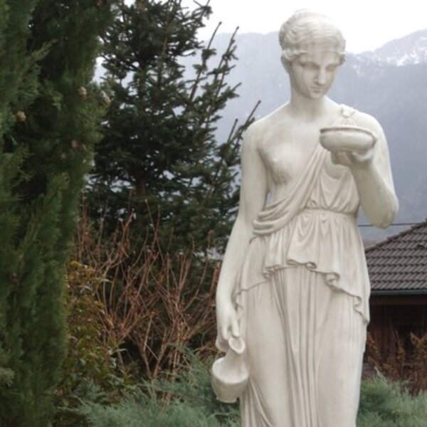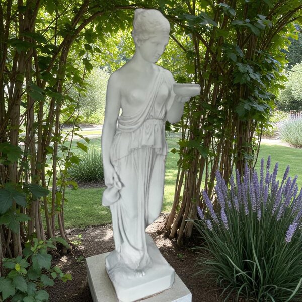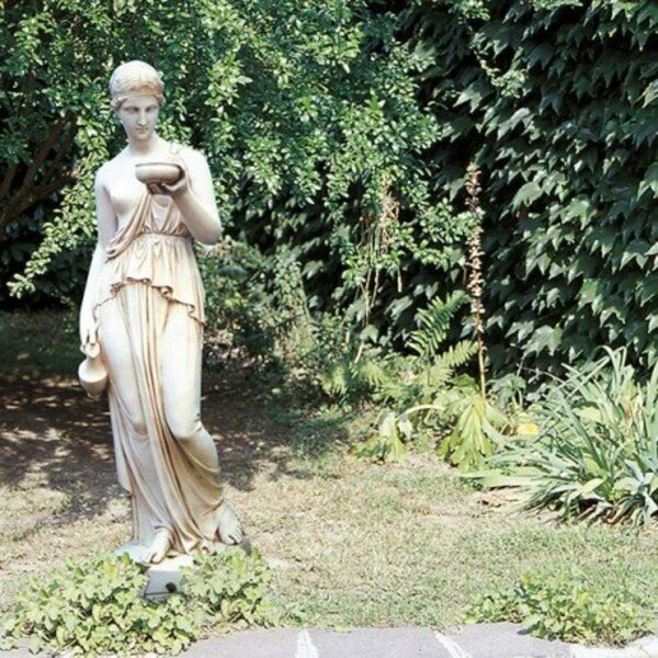 Cette majestueuse statue en pierre d'Hébé attira le regard de vos convives de part sa silhouette et sa grace.Vous pouvez pour le plaisir des yeux placer une petite bougie dans sa coupelle, pour l'éclairer la nuit lors de vos soirées.