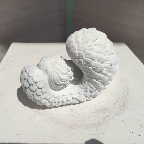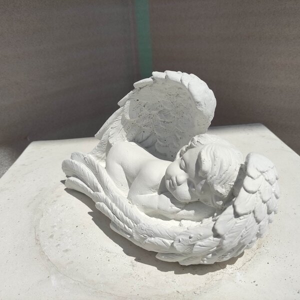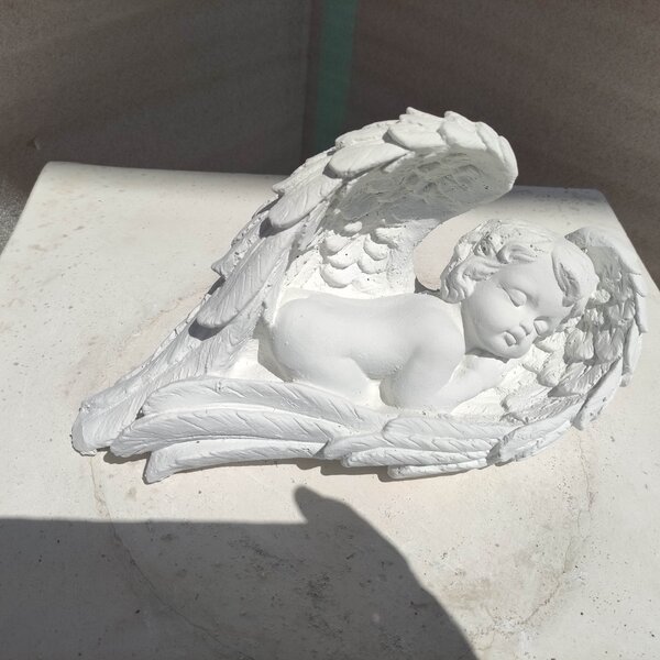 Statue en pierre reconstituée,Angelot dormant dans ses ailes . Décoration idéale pour l'intérieur et l'extérieur.Vous pourrez le poser sur le suport de votre choix.