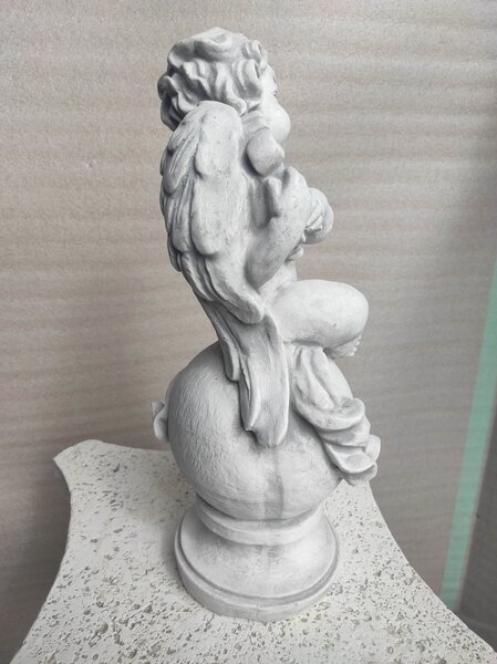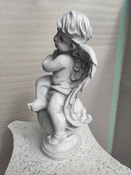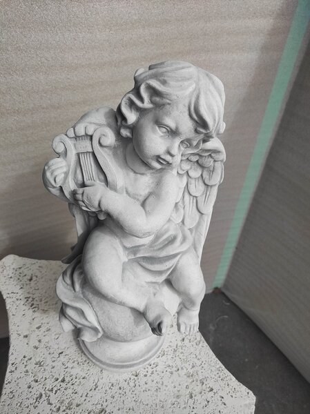 Angelot Musicien à la lyre en pierre reconstituée. Décoration idéale pour l'intérieur et l'extérieur.Vous pourrez le poser sur le suport de votre choix.