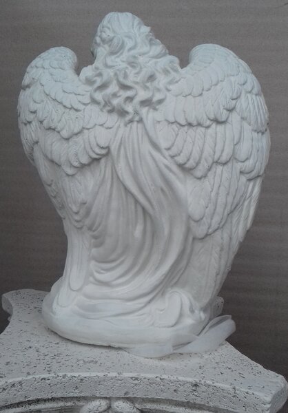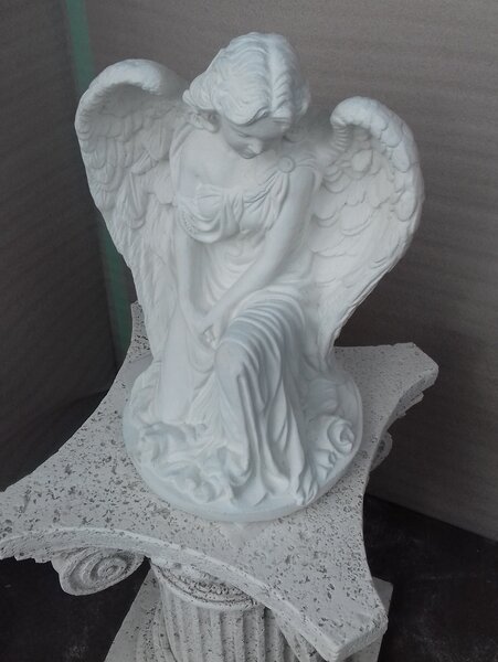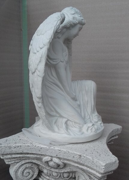 Superbe statue d'Ange agenouillé en pierre reconstituée,