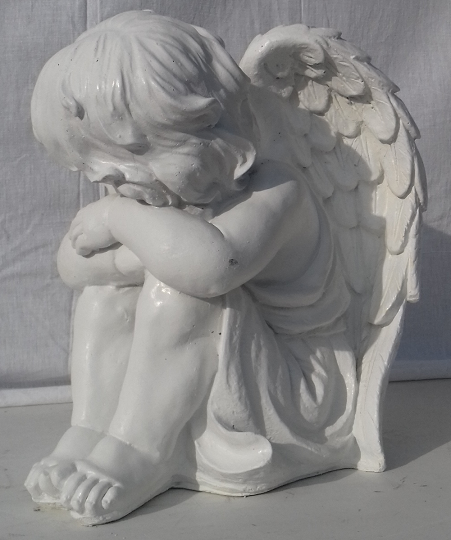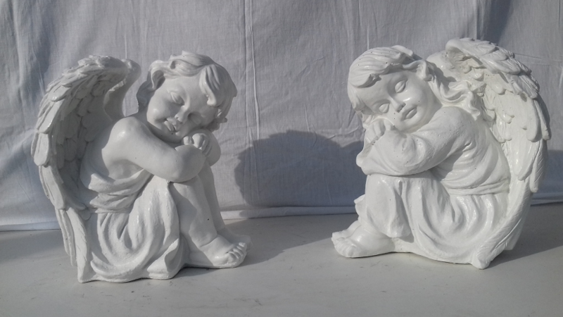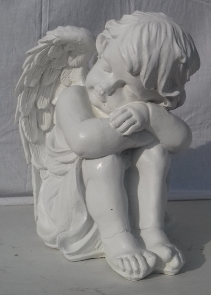 Cette superbe statue d'Ange endormi la tête tounée à droite de couleur perle,lui donnant l'aspect du marbre,décorera agréablement votre jardin,vous pourrez également le déposer sur un pilier d'entrée .