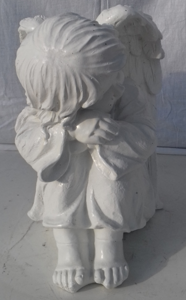 Cette superbe statue d'Ange endormi la tête tournée à gauche de couleur perle,lui donnant l'aspect du marbre,décorera agréablement votre jardin,vous pourrez également le déposer sur un pilier d'entrée .
