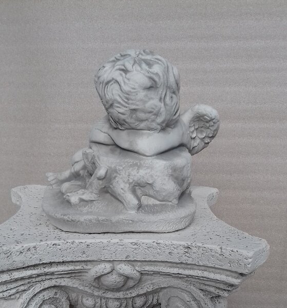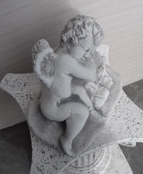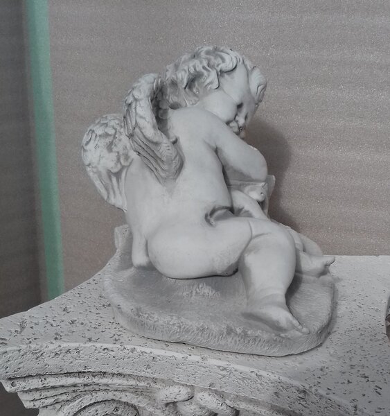 Magnifique statuette d'un petit cupidon endormi ,posé sur un petit muret ou au pied d'un bosquet ,il sera à sa olace.