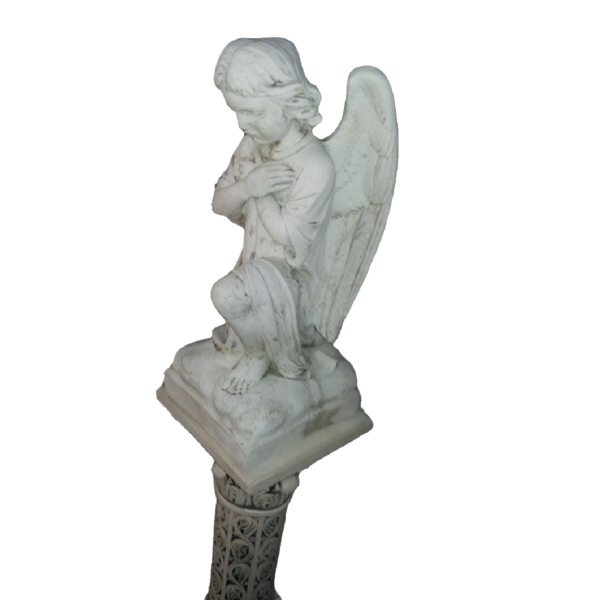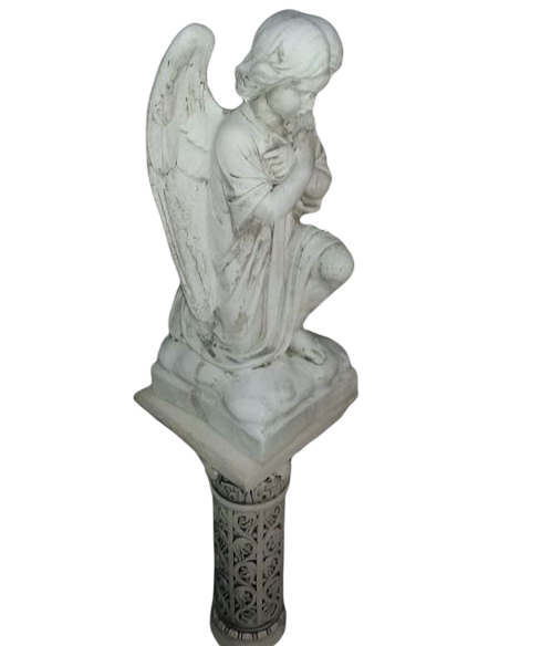 STATUE DECORATION DE JARDIN EN PIERRE ANGE A GENOUX