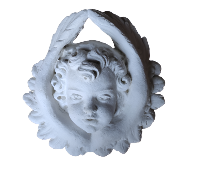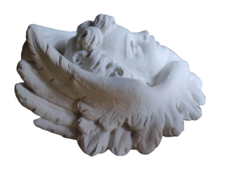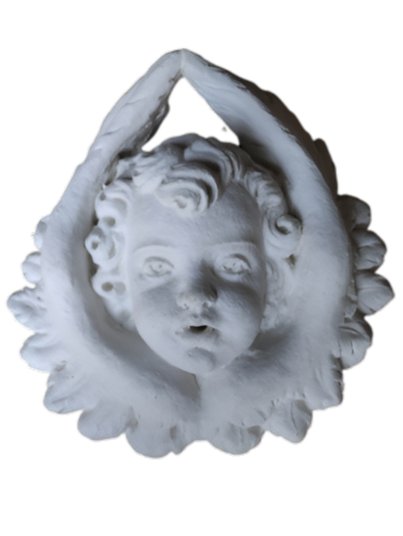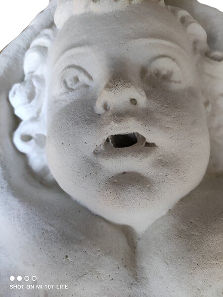 Jolie tête d'ange murale en pierre reconstituée,peut servir également de fontaine murale.