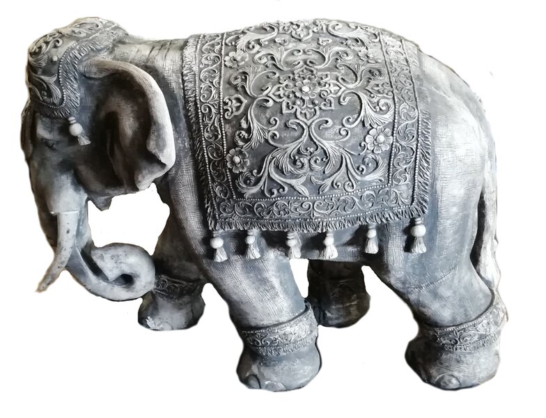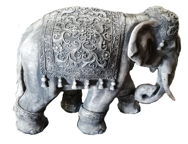 Statue éléphant de parade indien en pierre reconstituée, trés belle finition.Vendu avec les défenses . Décoration idéale en intérieur comme en extérieur, elle sera du plus bel effet dans votre jardin ou maison ! Fabrication artisanale, en Europe.