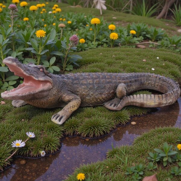statue en pierre crocodile en couleur