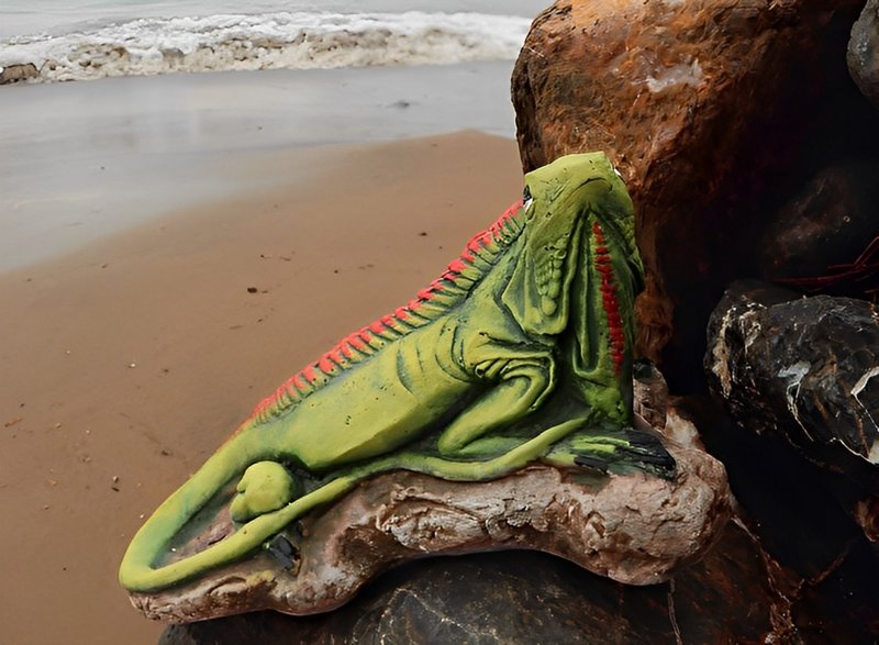 Statue en pierre reconstituée, iguane plus vrai que nature,ce bel iguane posé sur sa branche sera bufflant au milieu de vos rocailles.