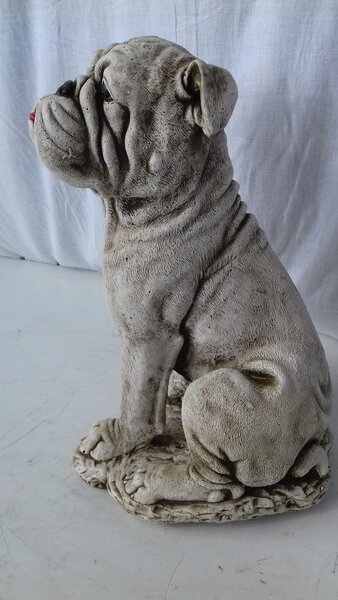 Statue en pierre reconstituée, modèle chien Bouledogue. Décoration idéale en intérieur comme en extérieur, elle sera du plus bel effet dans votre jardin ou maison ! Fabrication artisanale, en Europe