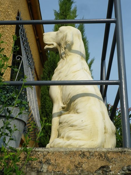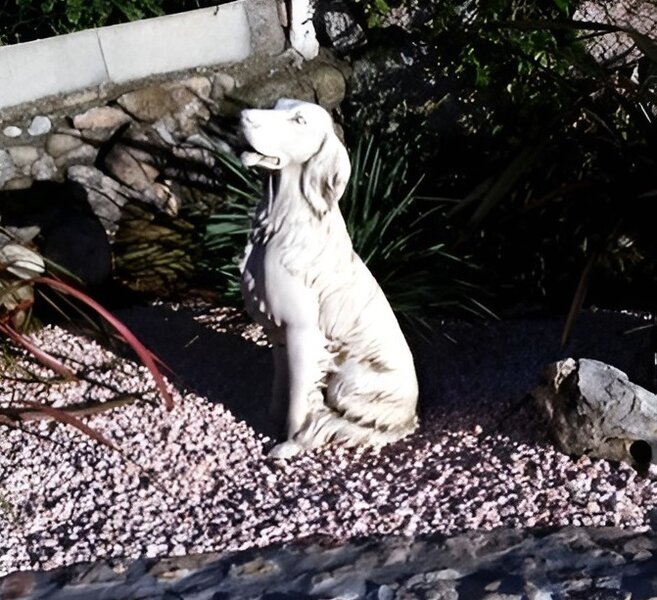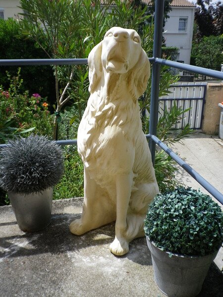 Statue en pierre reconstituée, modèle Chien Setter. Cette décoration sera du plus bel effet dans votre jardin ! Existe en trois teintes différentes : ton vieilli, ton crème, ton blanc pur. Fabrication artisanale, en Europe.