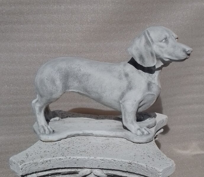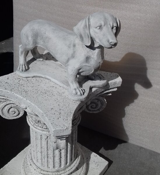 Statue en pierre reconstituée,TECKEL ,très belle statue réaliste,finition très proche de la réalité.Vous ne pourrez pas résister à ces beaux yeux .