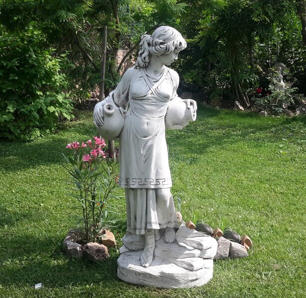 Statue femme en pierre reconstituée, modèle La Verseuse Romaine. Décoration idéale en intérieur comme en extérieur, cette magnifique femme sera du plus bel effet dans votre jardin ou maison ! Fabrication artisanale, en Europe.