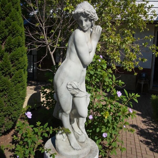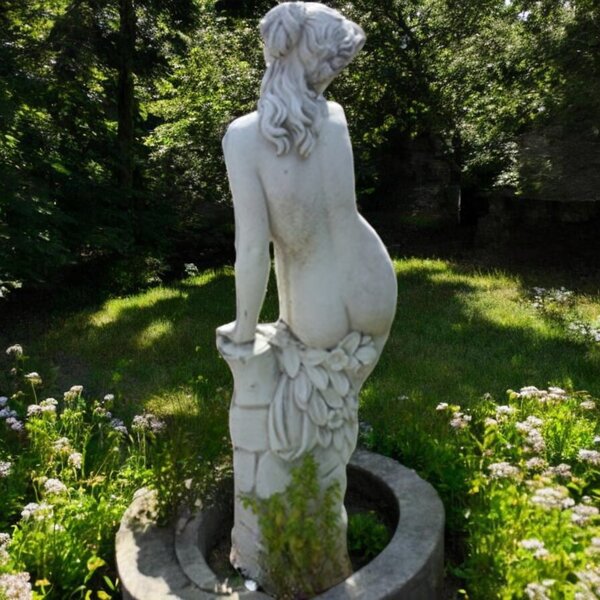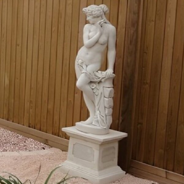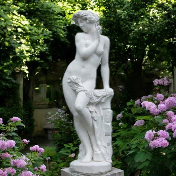 Statue de jardin en pierre Femme appuyée contre un Mur