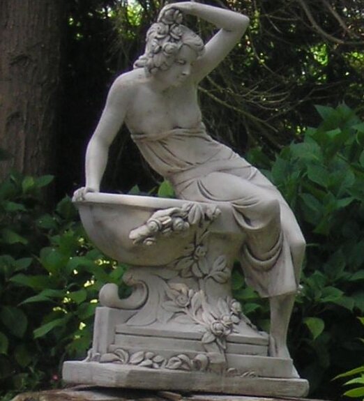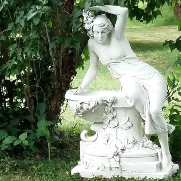 Statue de jardin en pierre Femme Assise sur vasque grand modèle