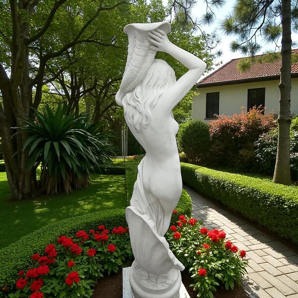 Statue de jardin en pierre Femme Debout sur Coquillage