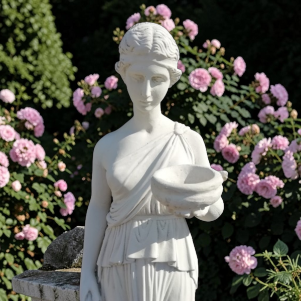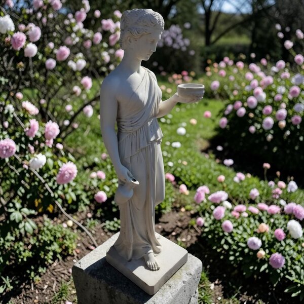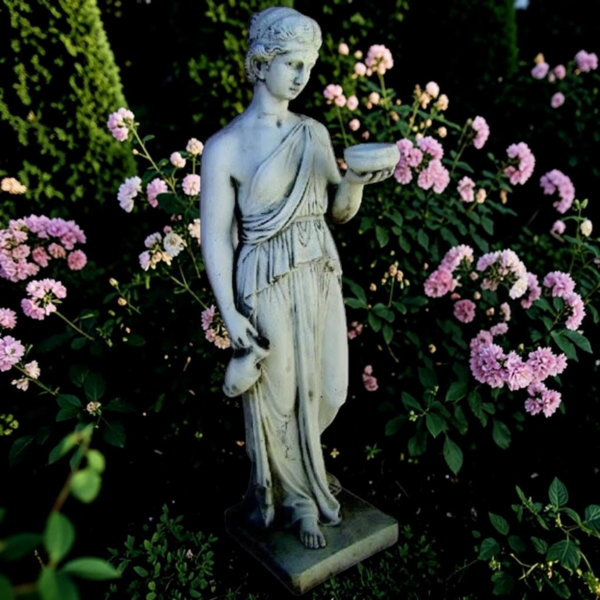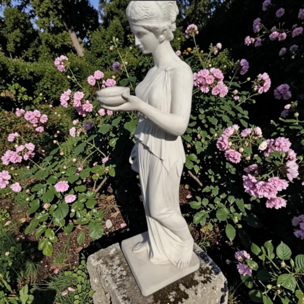 Statue en pierre reconstituée, modèle Femme Hébé. Décoration idéale en intérieur comme en extérieur, cette magnifique femme sera du plus bel effet dans votre jardin ou maison ! Fabrication artisanale de qualité, en Europe.