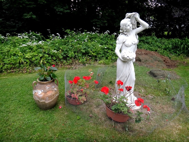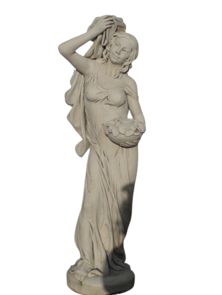 Statue de jardin en pierre : La Porteuse de Fleurs (bouquet de fleurs sur main gauche)
