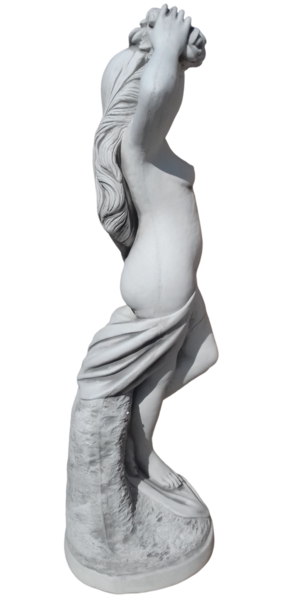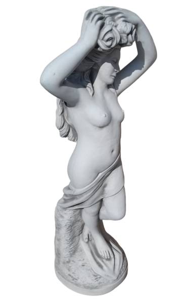 Statue femme dénudée tenant des roses sur sa tête
