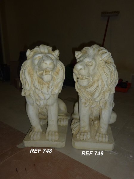 Statue en pierre reconstituée, modèle Lion Assis (regard à gauche). Décoration idéale en intérieur comme en extérieur, elle sera du plus bel effet dans votre jardin ou maison ! Fabrication artisanale, en Europe.