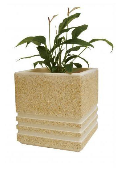 Vase carré en gravier lavé motif ligne en bas (petit)