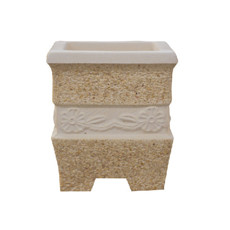 Vase carré en gravier lavé. Idéal pour décorer votre jardin avec une composition de fleurs ! Fabrication artisanale, en Europe.