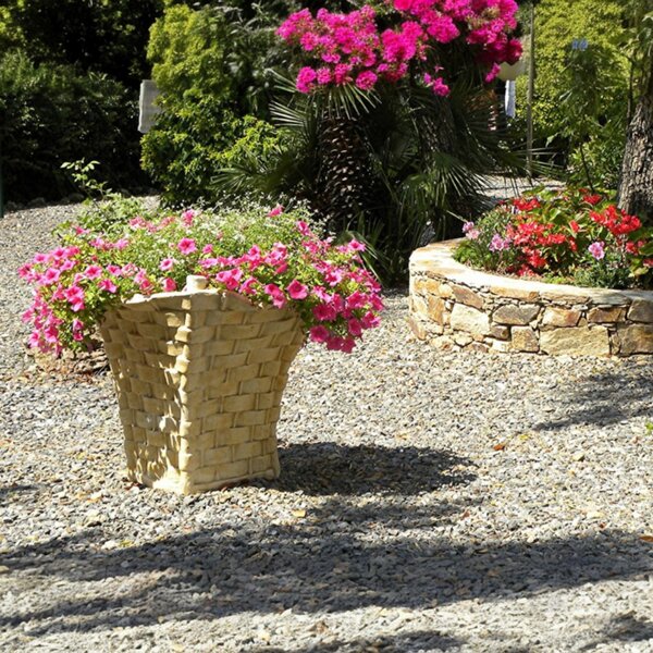 Vase en pierre reconstituée, modèle Grande Hotte Vendange. Idéal pour décorer votre jardin avec une composition de fleurs ! Fabrication artisanale, en Europe.
