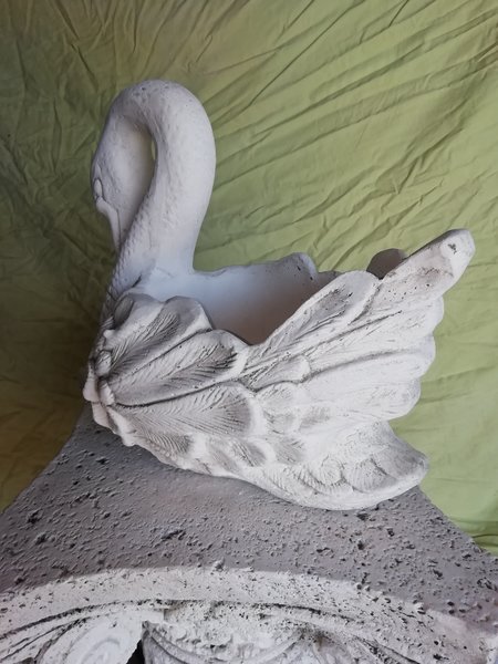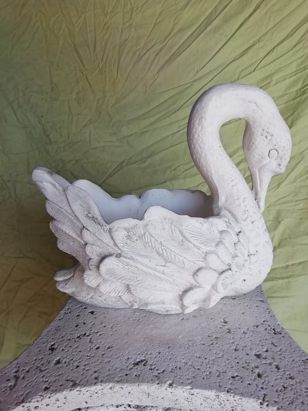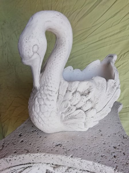 Vase en pierre reconstituée, modèle Cygne Petit. Idéal pour décorer votre jardin avec une composition de fleurs ! Fabrication artisanale, en Europe.