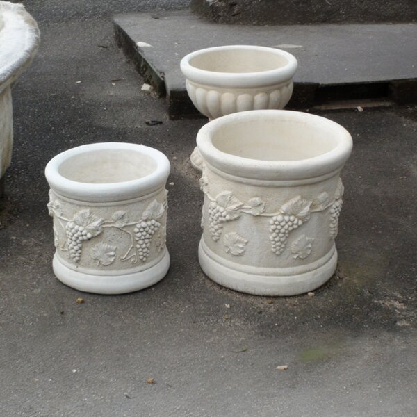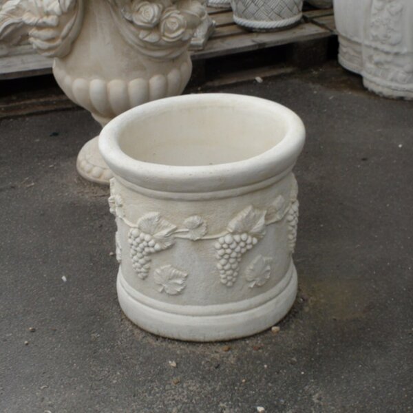 Vase rond en pierre reconstituée, avec motif Raisin. Idéal pour décorer votre jardin avec ou sans fleurs ! Fabrication artisanale, en Europe.