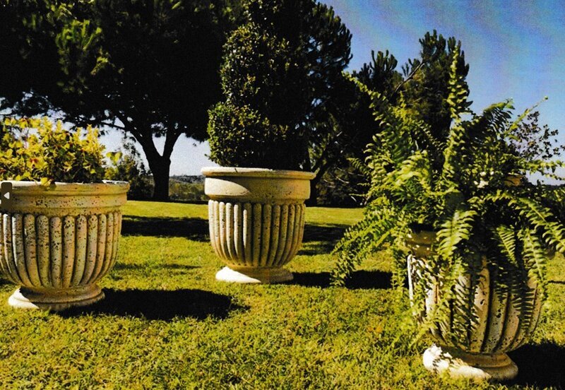 Vase en pierre reconstituée, avec motifs canelès, modèle 45 cm. Idéal pour décorer votre jardin avec une composition de fleurs ! Fabrication artisanale, en Europe.